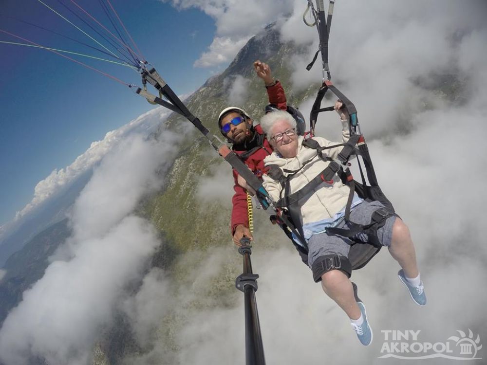 Babadag Mountain is one of the best locations in the world for paragliding with its height,view & scenery..After about 40min. journey to take off point we reach to the top of 6,600 ft of Babadag Mountain..We provide a flying suit and a safety helmet to each passenger and you need to wear comfortable clothing and a sturdy pair of shoes (ie trainers) also bring sunglasses, a bottle of water please..Then get ready and glide slowly on your parachute 'wing' to the golden sands of Oludeniz below.When the conditions are right you will both run until the glider inflates above your head and gently lifts you off the ground not like most people think jump off the mountain or edge of cliffs really..!!!..Now you can sit back and enjoy the thrill of soaring with the birds above the beautiful bay of Oludeniz/Blue Lagoon..Your pilot will be taking your pictures & video to record the experience of a lifetime which will last at least 20/30min fly time depens the weather conditions sometimes 40min..The landing is as smooth as take off, the pilot flaires the canopy and you touch down with a little forward motion.Minimum age should be 5 years old to fit in the harness upto almost anybody can partake in paragliding with our professional pilots have flown as passengers to 84 years old and the maximum weight can fly is 105 kg. which means 16 stone..Comprehensive insurance is included in the price also we always consider your safety as our top priority!!